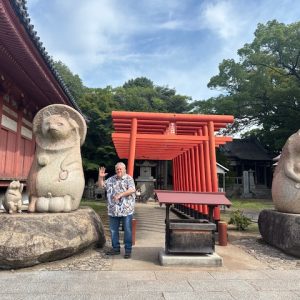 The temple grounds also contain large, stone images of Minoyama Daimyojin, a rascally tanuki (raccoon dog) that is able to change shape and assume other forms.